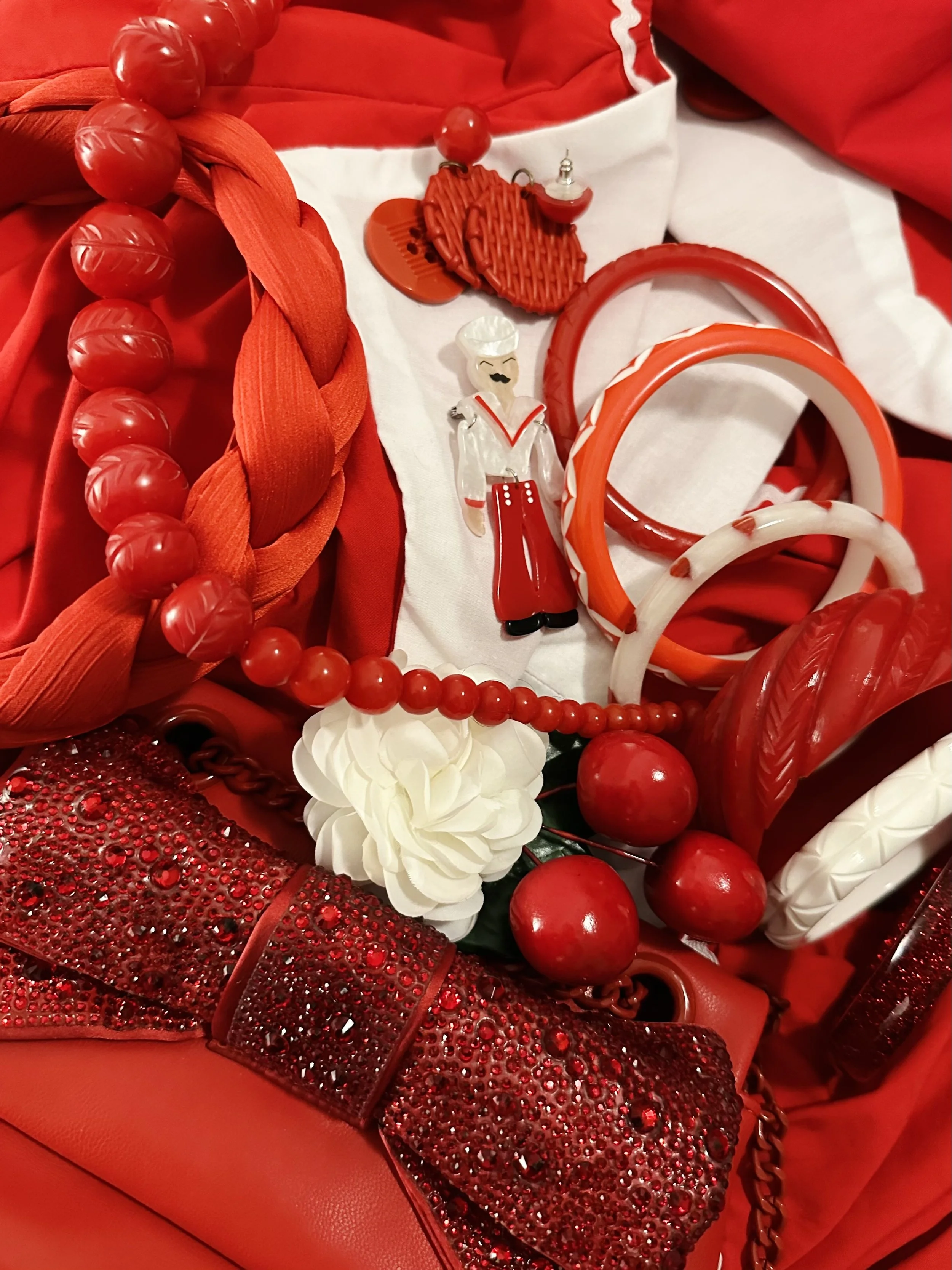 Of course, since red is my favorite color, I had a lot of fun accessories to choose from when putting this look together! I am especially enamored with the little sailor brooch from Erstwilder.